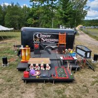 Our signature mobile stage is available for all outdoor sideshow performances and more! Rent our mobile stage for your event or party today! Great for bands comedy performances and more. If your having an outdoor gathering and need an easy cost effective stage solution, our mobile stage is perfect for you.